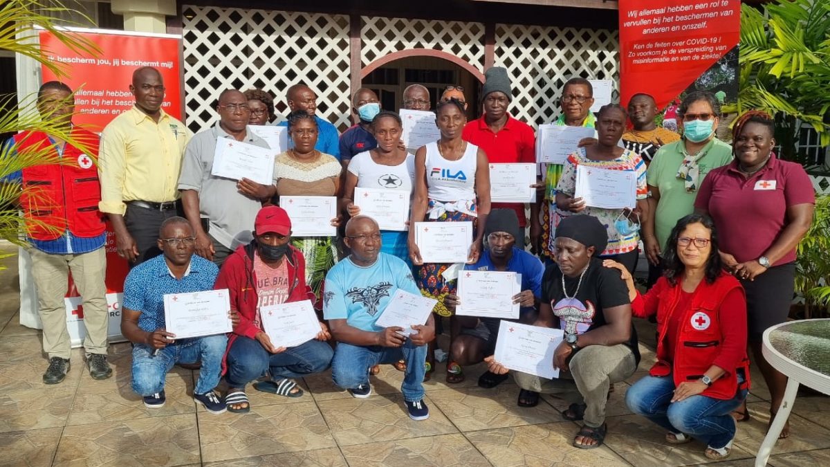 De participanten hebben enthousiast meegedaan aan deze praktische workshop en zijn voornemens het geleerde toe te passen bij terugkeer in hun dorpsgemeenschap. Het Rode Kruis is een door vrijwilligers gedragen humanitaire hulporganisatie die zich inzet voor de meest kwetsbaren in de samenleving. Vandaar dat zij vanuit haar mandaat diverse programma’s uitvoert om gemeenschappen voor te bereiden op de gevolgen van rampen en calamiteiten als gevolg van klimaatverandering en gezondheid gerelateerde aandoeningen. Door mensen te leren hoe zij kunnen handelen bij ongevallen of ernstige gebeurtenissen, zijn zij beter voorbereid en kunnen zelf eerste hulp bieden in hun gemeenschap, terwijl belangrijke informatie voor een gedegen hulpactie gedeeld wordt met het Rode Kruis en andere organisaties.
